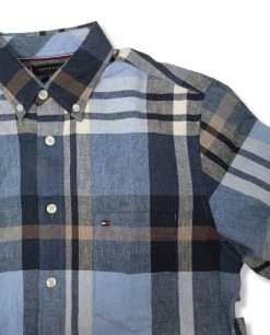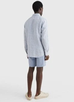 Tommy Hilfiger Mens Cotton Linen Shaded CHK RF Shirt
