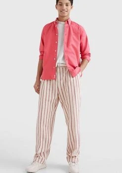 Tommy Hilfiger Mens Prem Linen Shirt Deep Crimson Fruit