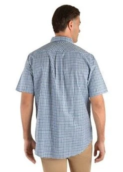 Small scale yarn dyed check, countryman pockets with pen holder, long shirt tail, back pleat for comfort, concealed collar peak buttons, removable collar stays,